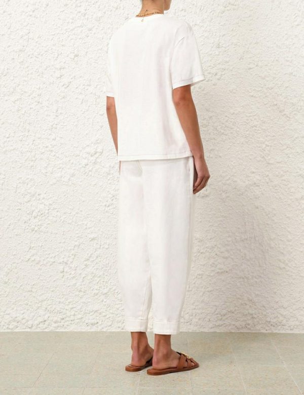 The Acadian Printed Relaxed Tee in Light Cream from our Resort Swim 2024 Collection. A cotton tee featuring a Zimmermann print.