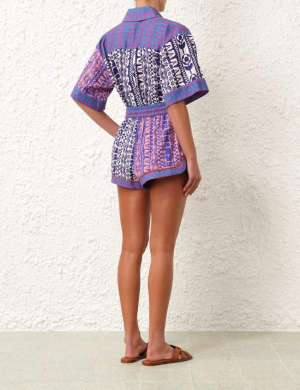 The Acadian Relaxed Short in Spliced from our Resort Swim 2024 Collection. A cotton printed short featuring an elasticated waistband and a self tie waist.
