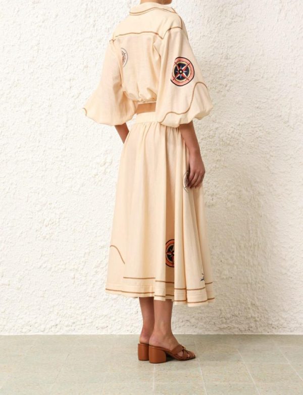 The Alight Draw Waist Shirt in Beige from our Resort Swim 2024 Collection. A cropped long sleeve blouse featuring a drawstring waistband with rope ties.