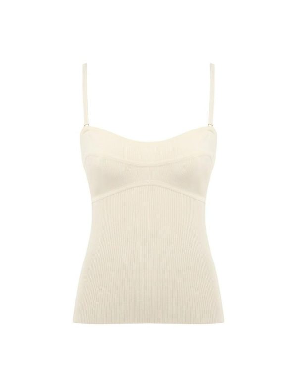 The Alight Panelled Rib Tank in Parchment from our Resort Swim 2024 Collection. A ribbed knit tank with adjustable straps.