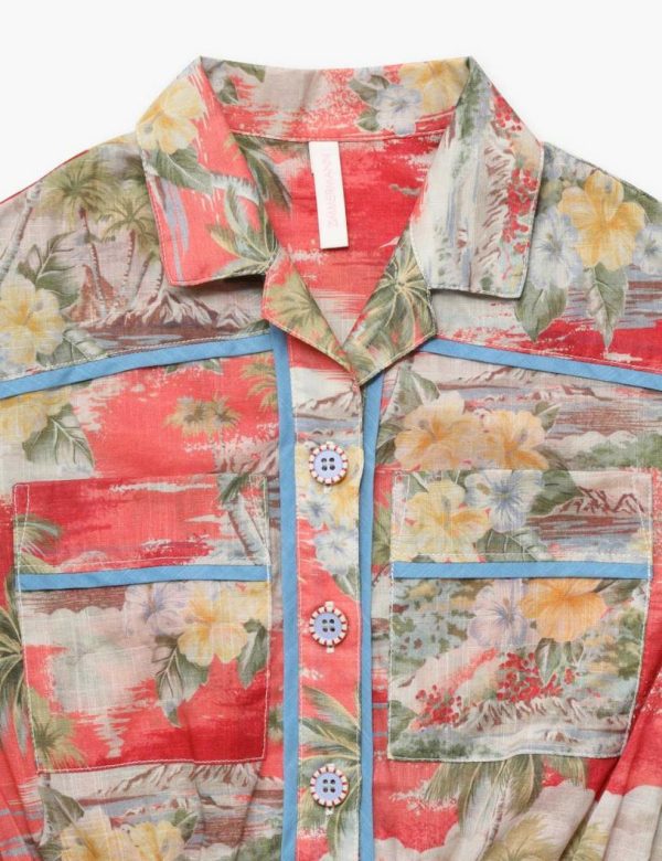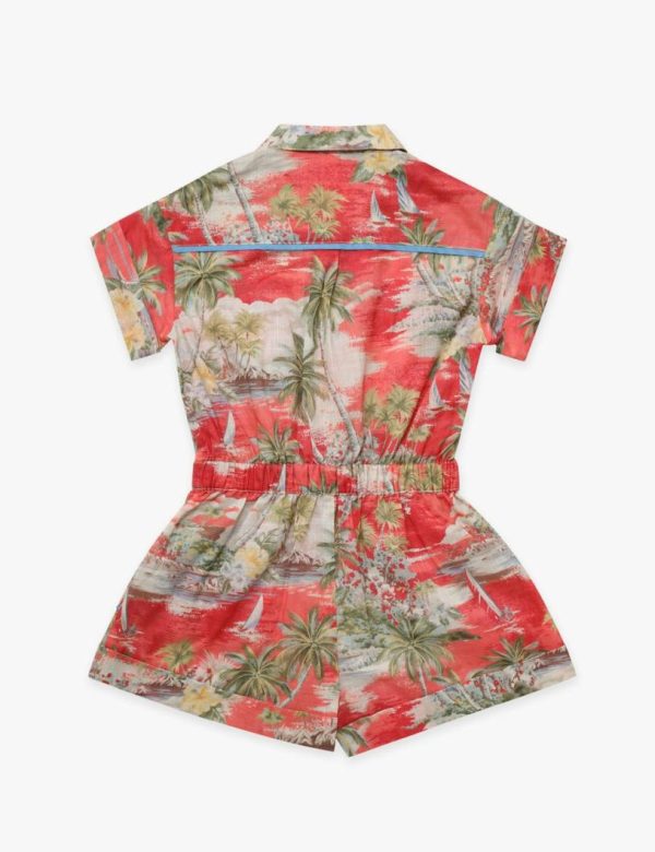 The Alight Pocket Detail Playsuit in Red Palm from our Resort Swim 2024 Collection. A cotton playsuit featuring contrast piping and front pockets.