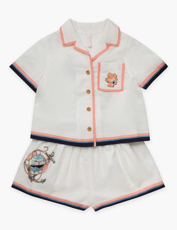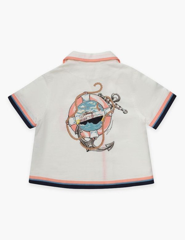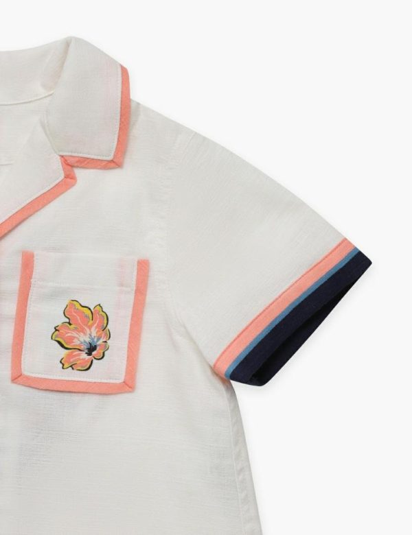 The Alight Relaxed Shirt in Ivory Multi from our Resort Swim 2024 Collection. A cotton button up shirt with short sleeves, a classic collar and chest pocket.