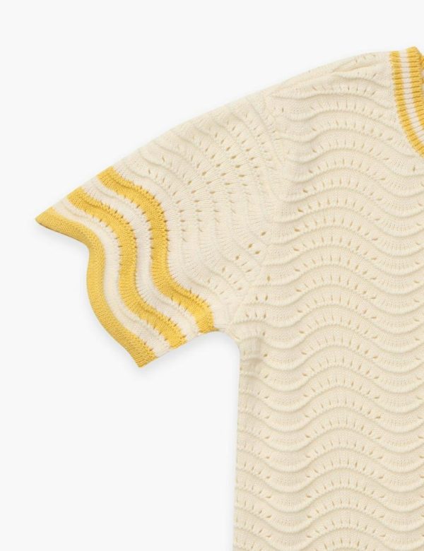 The Alight Textured Knit Tee in Cream/Yellow from our Resort Swim 2024 Collection. A knit short sleeve tee featuring a scalloped hem.