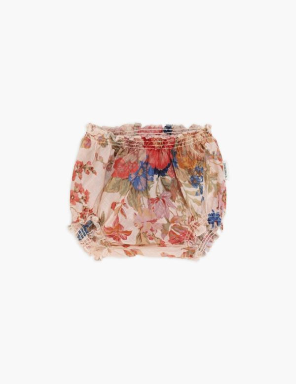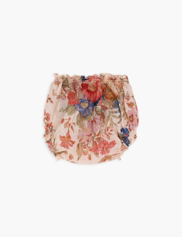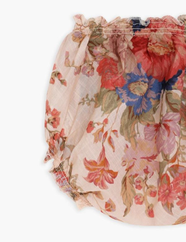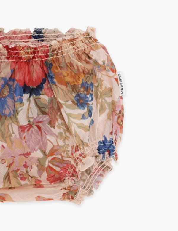 The August Bloomer in Cream Floral from our Resort Swim 2024 Collection. A cotton bloomer with elastic trims and frilled edges.