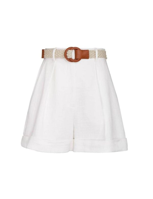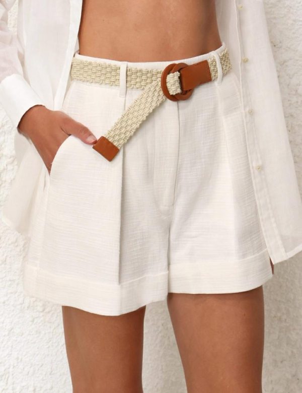 The August Cuffed Short in Ivory from our Resort Swim 2024 Collection. A high waisted short with fixed rolled cuffs and centre front leg tucks.
