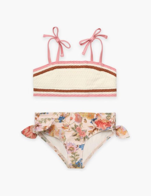 Zimmermann August Knit Bandeau Bikini Cream Floral | Kids Swimwear