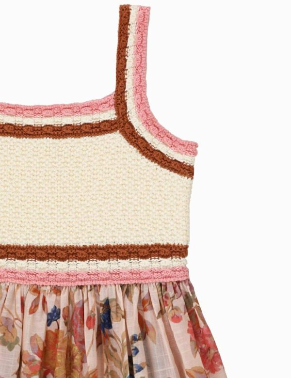 The August Knit Top Woven Dress in Multi from our Resort Swim 2024 Collection. A kids dress with a knitted bodice.