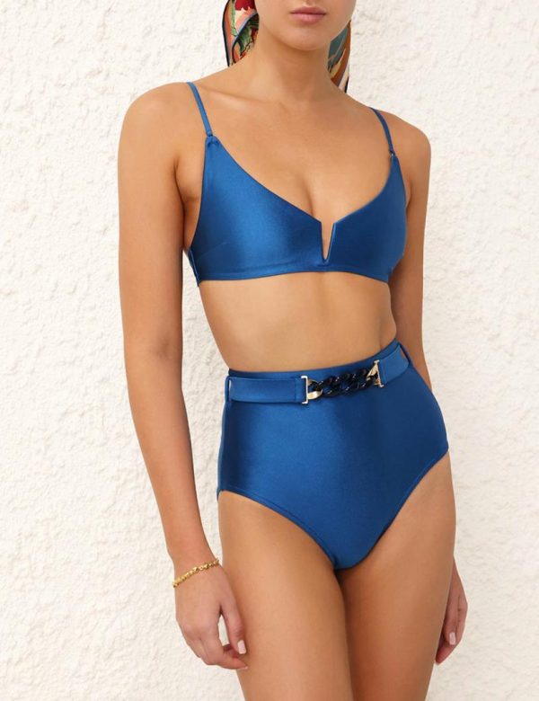 The August Plunge V Wire Bra in Teal from our Resort Swim 2024 Collection. A lycra bra with adjustable seamless straps, U-wire at centre front, and a centre back clip.