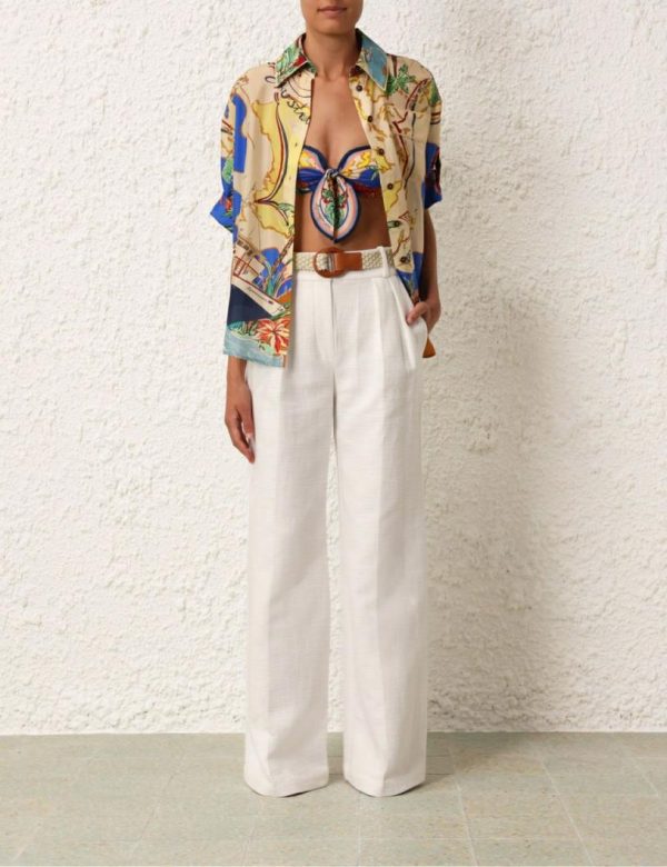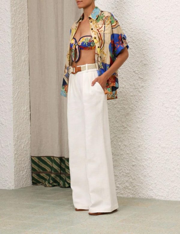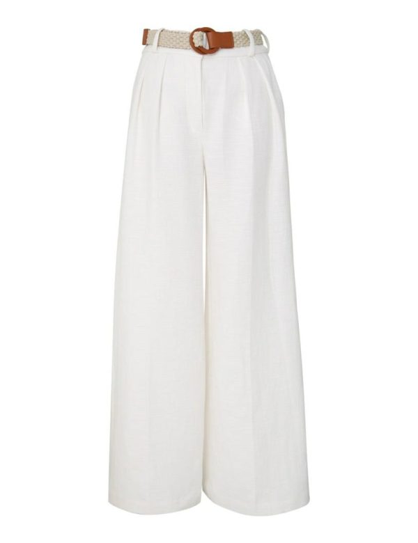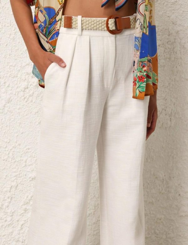 The August Tuck Pant in Ivory from our Resort Swim 2024 Collection. A high waisted pant with centre front leg tucks and side hip pockets.