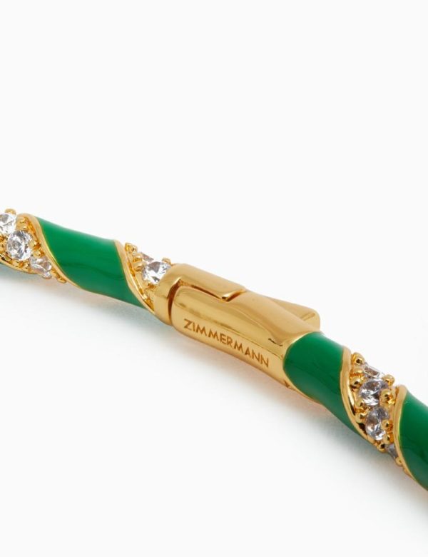 Zimmermann jewellery is produced in 20kt gold-plated brass. Please remove when exercising, showering or swimming. Keep enamel away from perfumes, acetones, hand and body creams and water as they may cause damage or discolouring. Clean your enamel jewellery pieces with warm water, a mild liquid soap and a soft cloth. Store in a cool, dry place to prevent damage. Keep away from direct sunlight and heat. Always check the garment care label for specific care instructions.