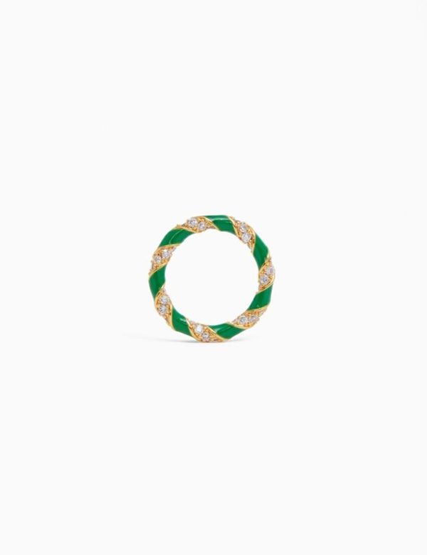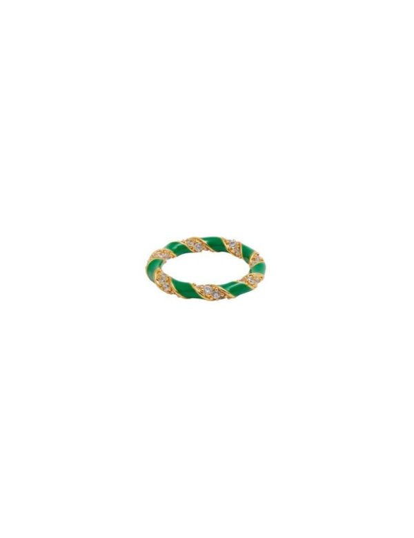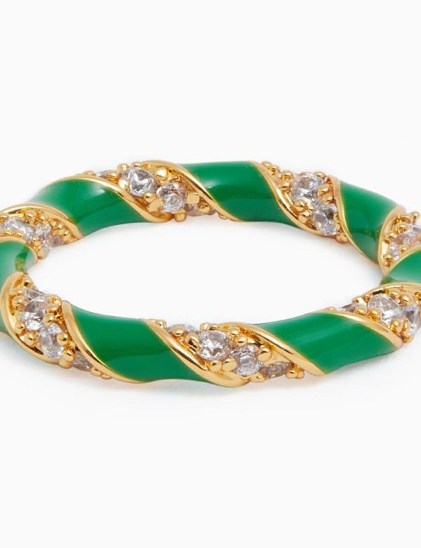 The Candy Stripe Pave Ring in Gold/Green from our Spring 2023 Collection, Wonderland. A gold plated stackable ring featuring cubic zirconia stones throughout.