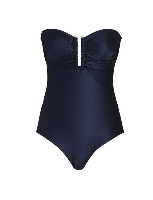 The Chintz Deep U Trim 1PC in Dark Navy from our Summer Swim 2023 Collection. An Italian lycra one piece, featuring a bandeau top with a deep U link at the bust.
