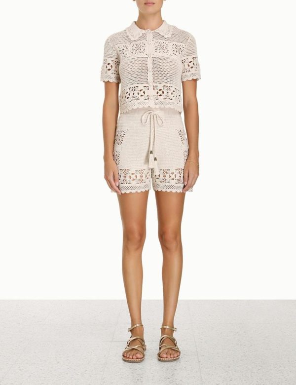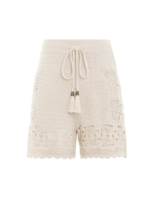 The Chintz Hand Crochet Shorts in Natural from our Summer Swim 2023 Collection. A hand crochet short featuring an elasticated waist with drawstring ties with toggle ends.