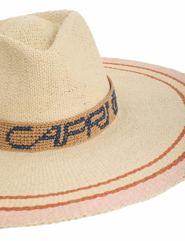 The Contrast Stripe Hat in Capri from our Holiday 2023 Edit. A wide brim hat featuring contrast edges throughout.