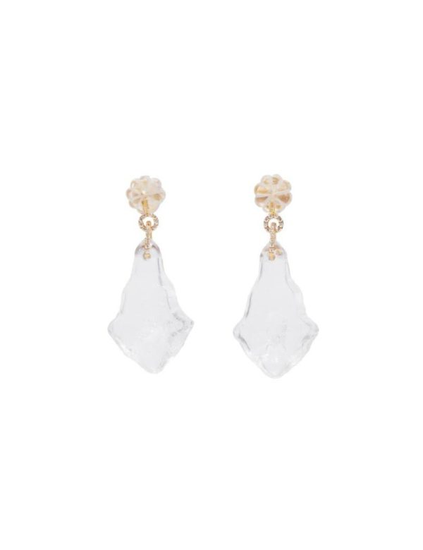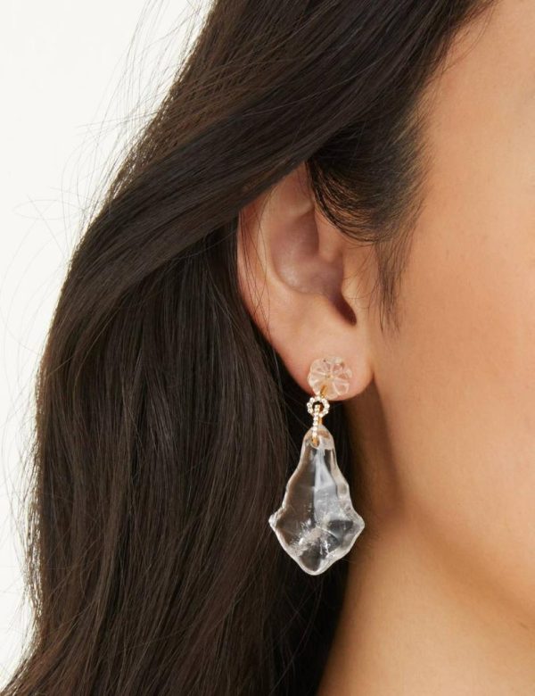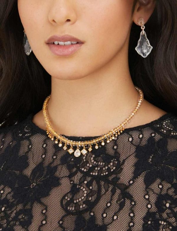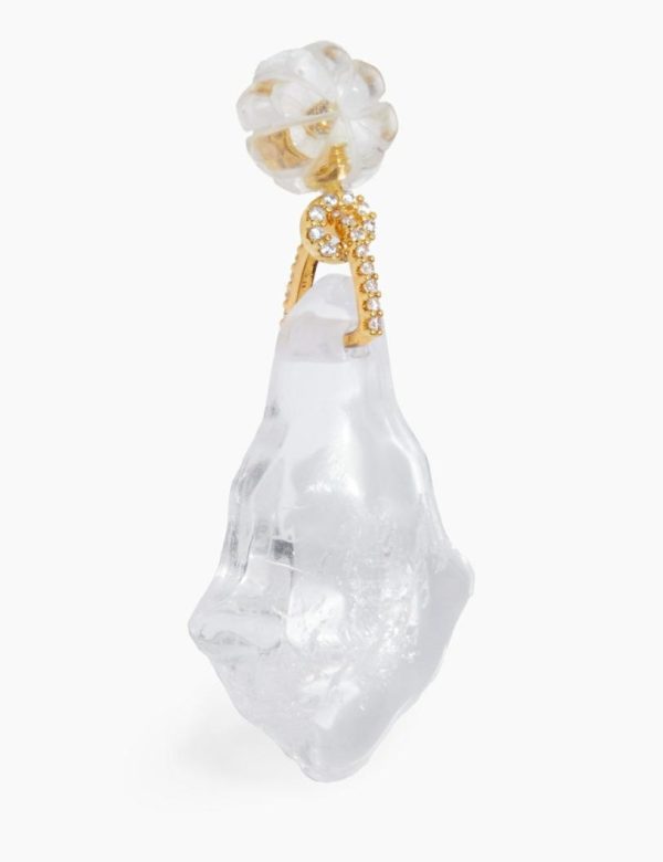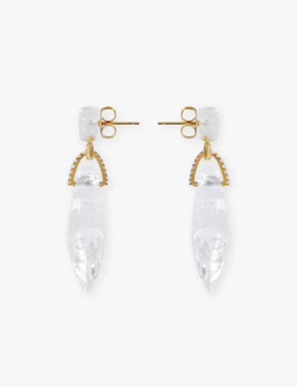 The Crystal Chandelier Earrings in Gold/Transparent Quartz from our Fall 2023 Collection, Luminosity. A gold plated drop earring featuring transparent quartz.