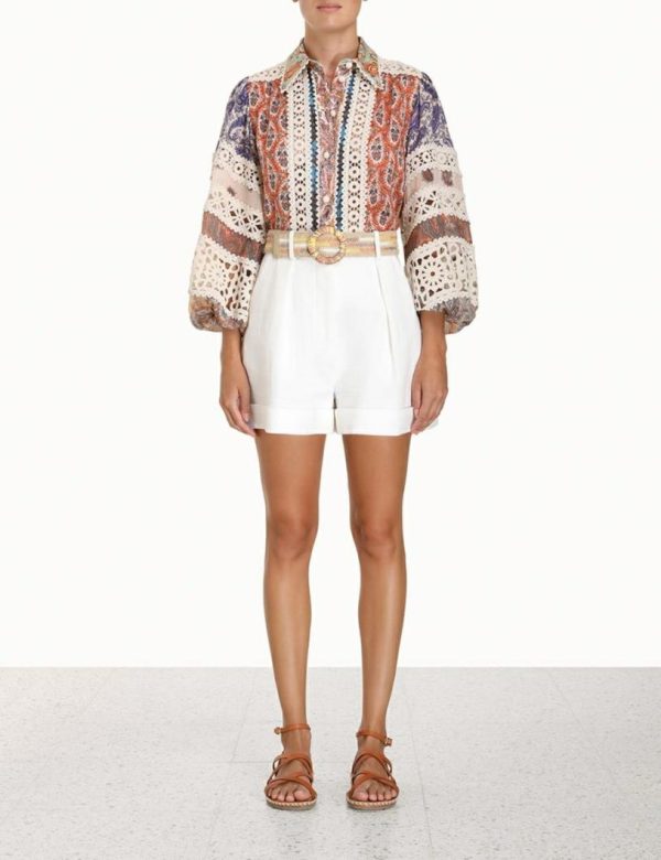 The Devi Cuffed Shorts in Ivory from our Summer Swim 2023 Collection. A high waisted cotton pant featuring tucks through the front legs, side seam angle pockets and back welt pockets.