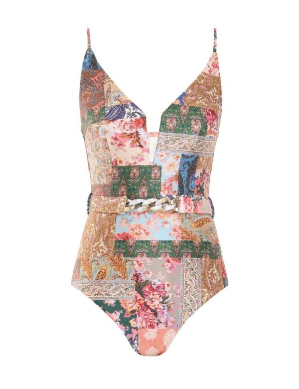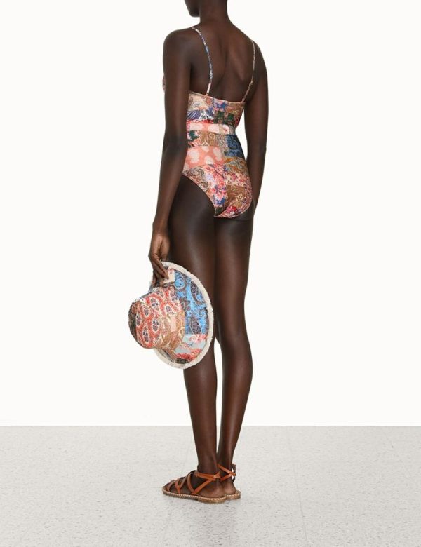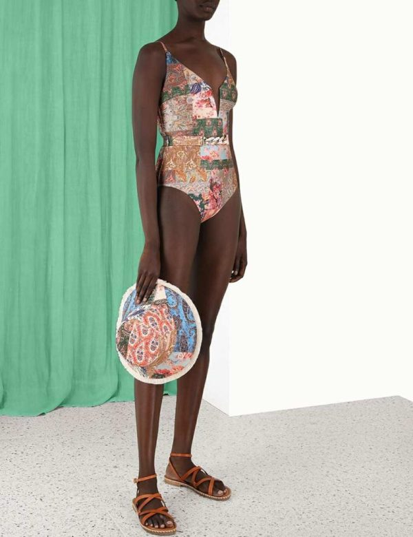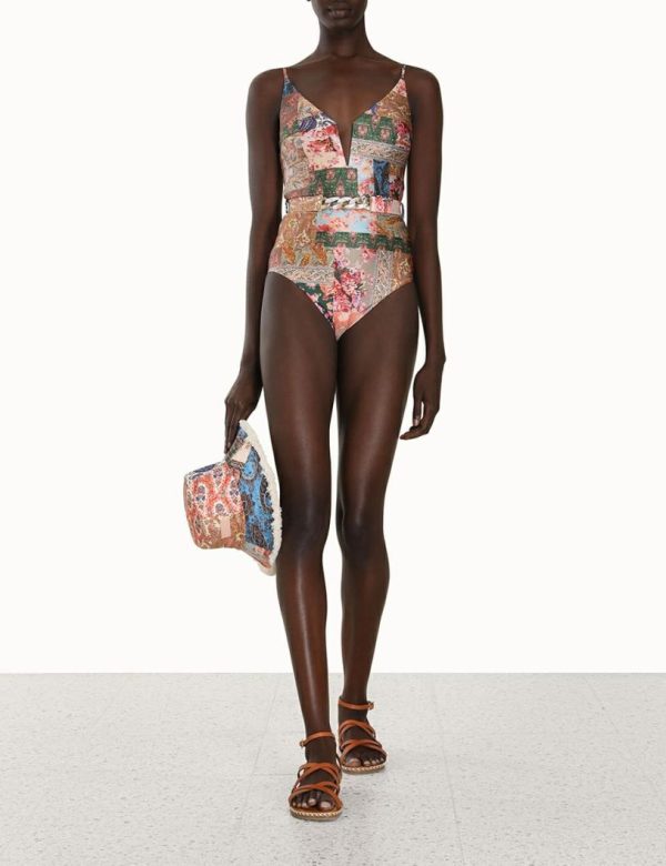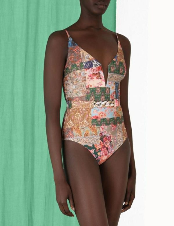 The Devi Plunge V Wire 1PC in Patch Paisley from our Summer Swim 2023 Collection. A lycra one piece featuring a removable belt, U-Wire at the bust, boning at the side seam and adjustable straps.