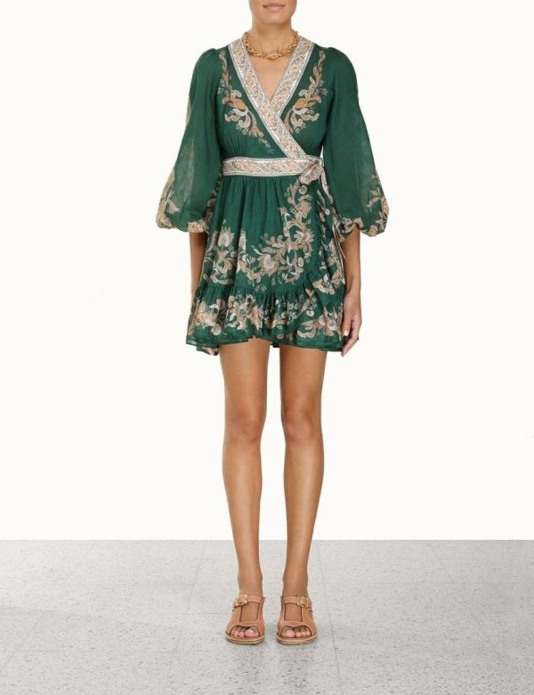 Zimmermann Devi Wrap Mini Dress Emerald/Paisley | Women Clothing