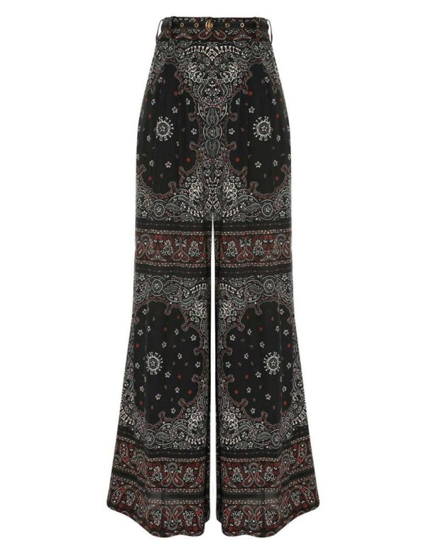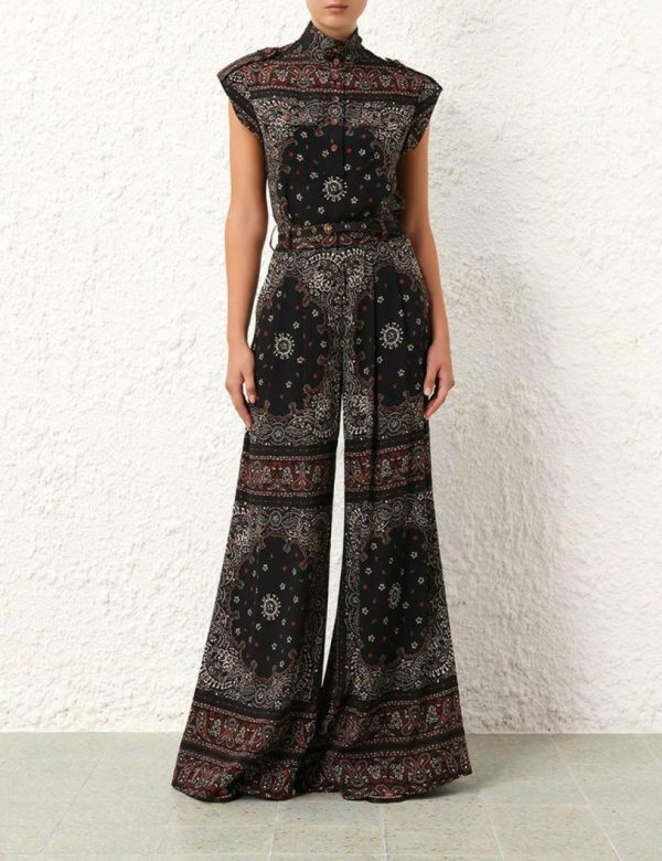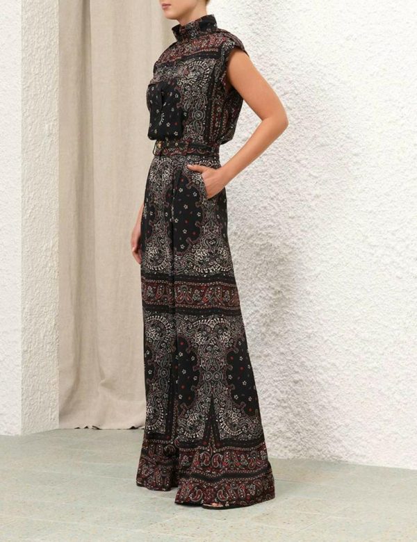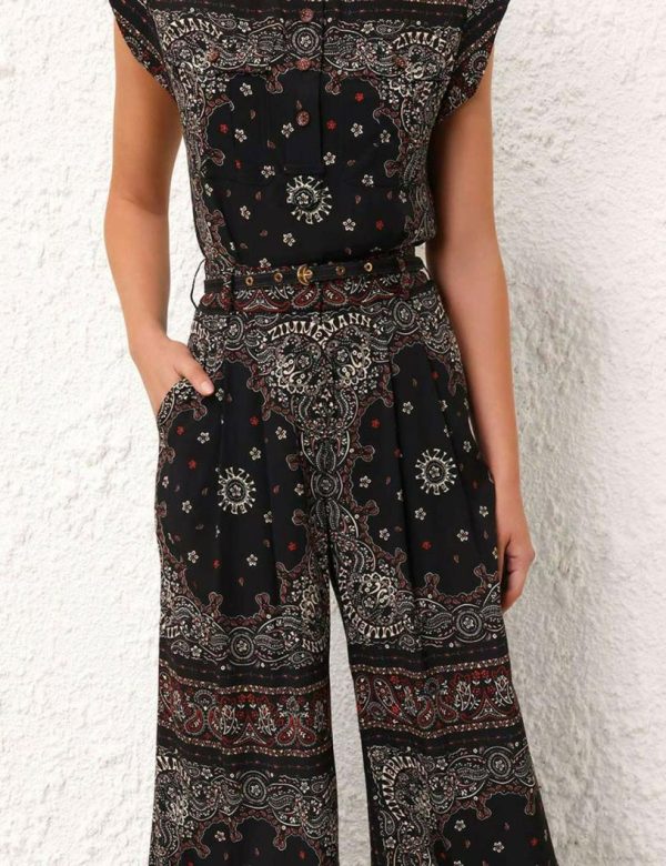 The Double Tuck Pant in Black Bandana from our Resort 2024 Collection, Matchmaker. A wide leg pant featuring side seam pockets and a self cover belt.