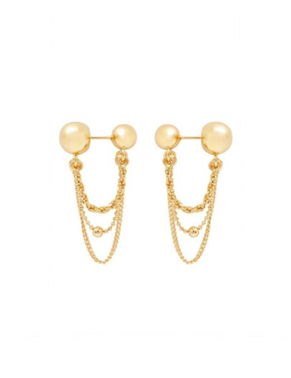 The Fine Collage Earrings in Gold from our Spring 2023 Collection, Wonderland. A gold plated stud earring with fine chain layers.