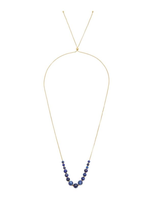 The Fine Lapis Sphere Necklace in Gold/Lapis from our Spring 2023 Collection, Wonderland. A gold plated chain necklace featuring semi-precious stones throughout.