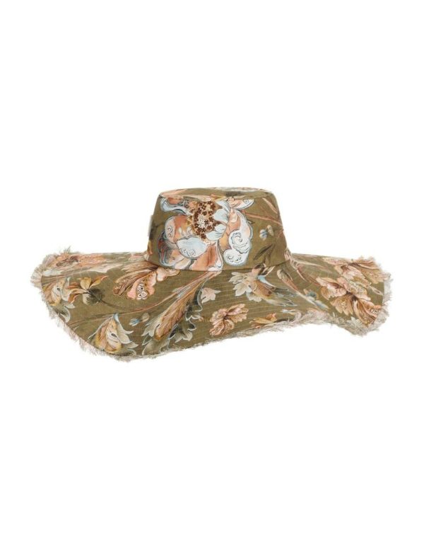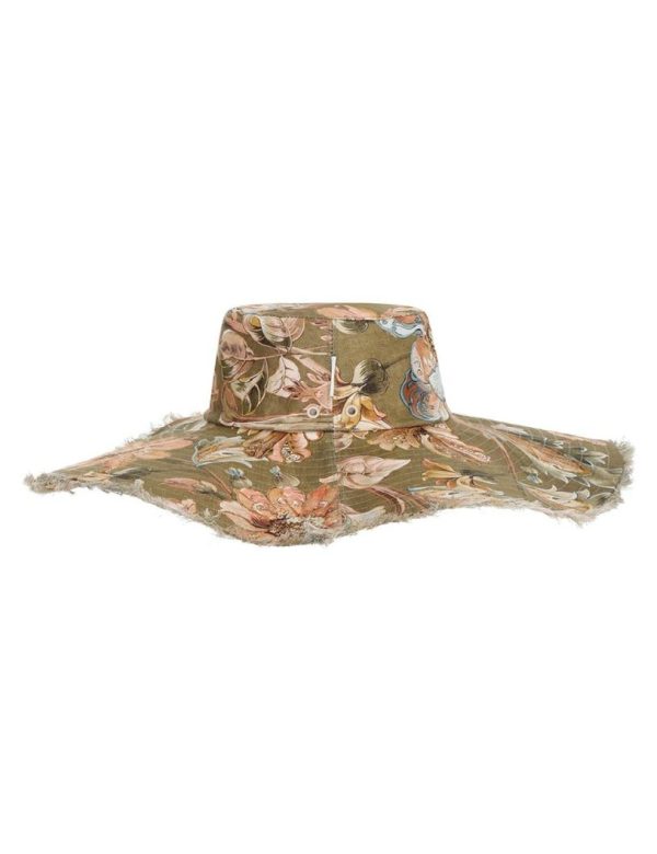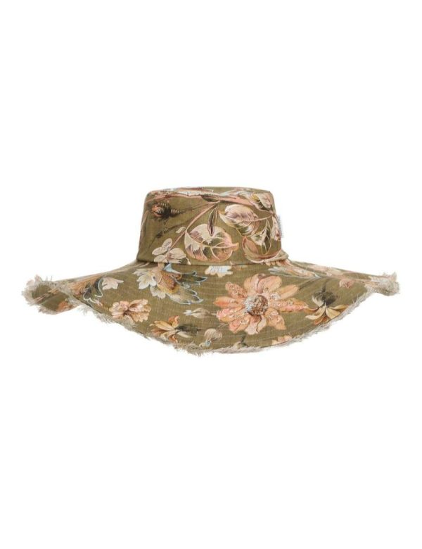 The Floppy Hat in Khaki Daisy Floral from our Summer Swim 2023 Collection. A linen hat featuring a wide floppy brim and tassel trim.