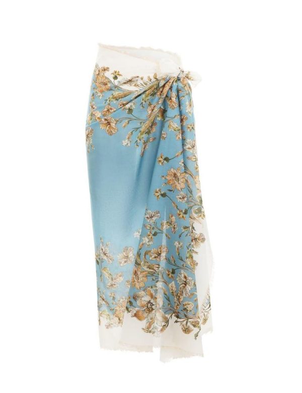 The Fringe Cotton Pareo in Blue Daisy Floral from our Summer Swim 2023 Collection. A large rectangle pareo featuring frayed edges and a placement print throughout.
