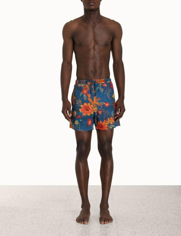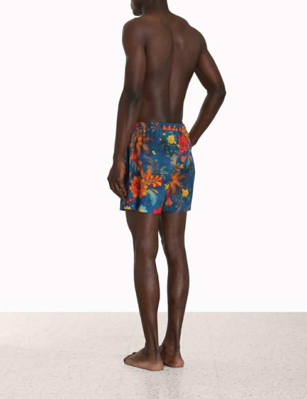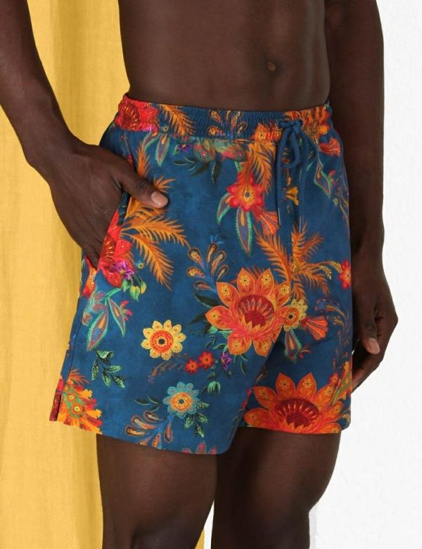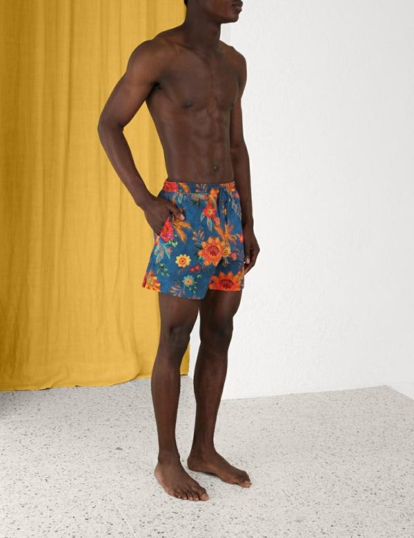 The Ginger Mens Boardshort Short in Navy Floral from our Summer Swim 2023 Collection. A printed boardshort with elasticated waistband, drawstring cord, side seam pockets and inbuilt support mesh lining.