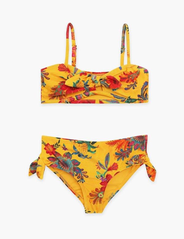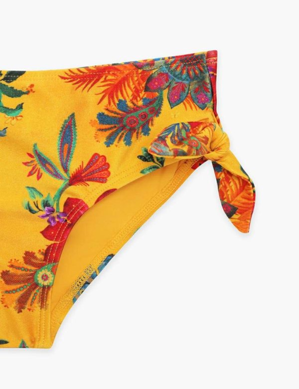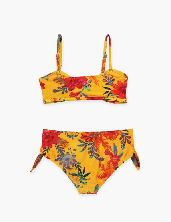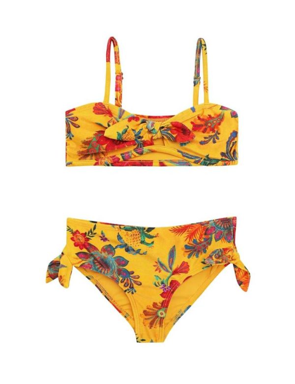 The Ginger Tie Bikini in Yellow Floral from our Summer Swim 2023 Collection. An Italian lycra bikini set featuring bow details on the top and pant sides.