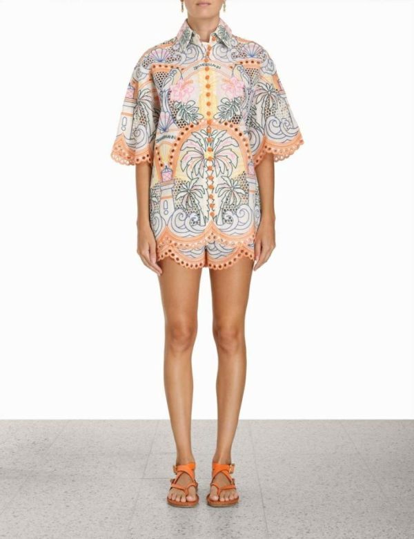 The Ginger Tropical Short in Multi from our Summer Swim 2023 Collection. . A linen broderie anglaise short featuring a high waist and hand cut embroidered hem.