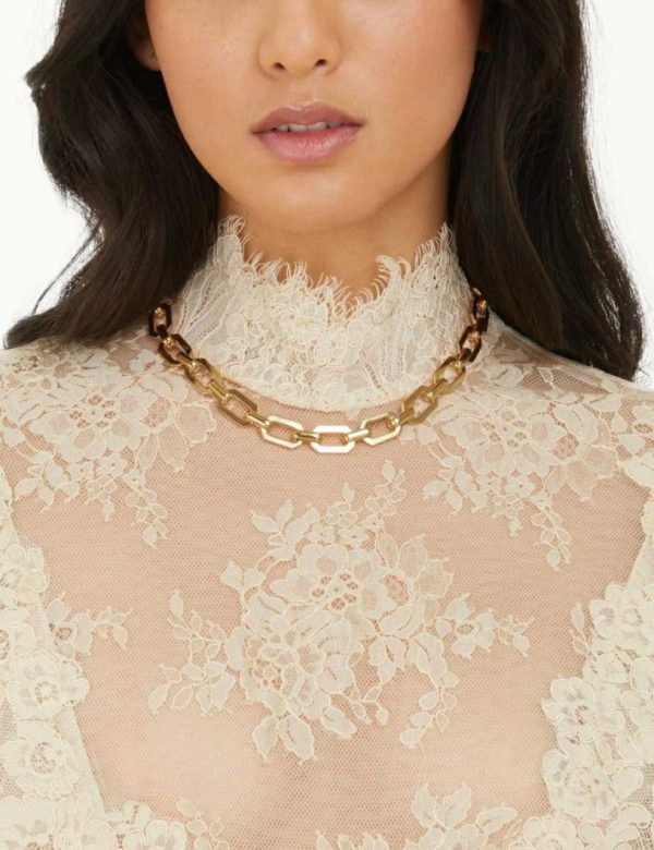 The Graphic Chain Necklace in Gold from our Fall 2023 Collection, Luminosity. A gold plated chain link necklace.