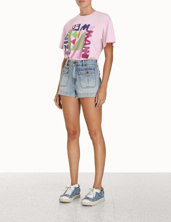 The Halcyon Relaxed Tee in Blush from our Summer Swim 2023 Collection. A cotton tee featuring a Zimmermann print.