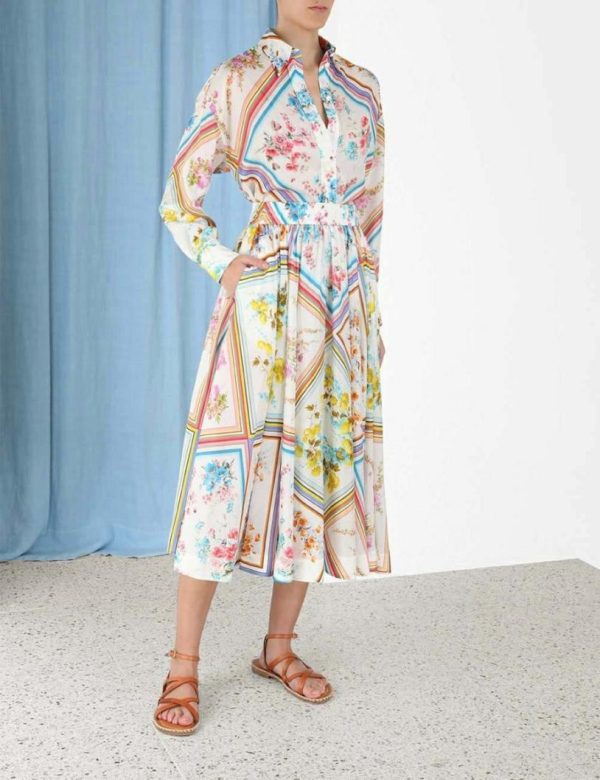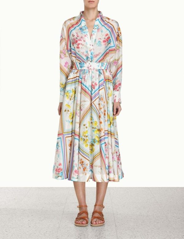 The Halcyon Swing Skirt in Multi from our Summer Swim 2023 Collection. A silk midi skirt featuring an elastic waistband and side seam pockets.