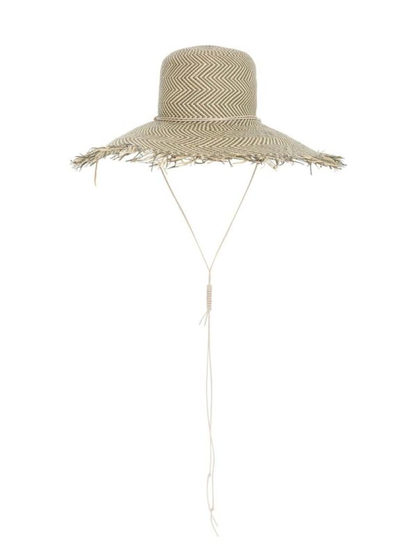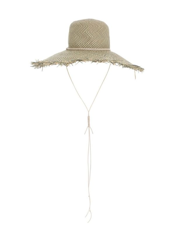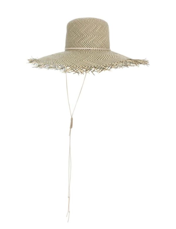 The Herringbone Wide Brim Hat in Olive from our Summer Swim 2023 Collection. A wide brim hat featuring contrast strands of straw throughout and a cotton drawstring.