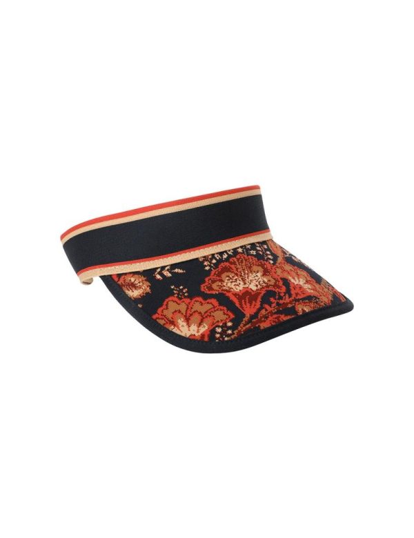The Jacquard Visor in Dark Navy Floral from our Resort 2024 Collection, Matchmaker.A cotton jacquard visor with a velcro strap.