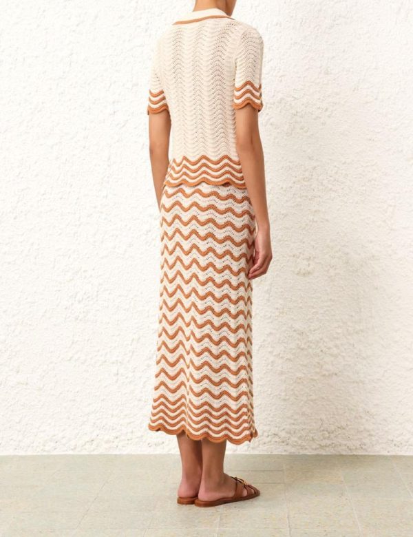 The Junie Textured Knit Polo in Tan/Cream from our Resort Swim 2024 Collection. A knitted polo featuring self yarn crochet buttons.