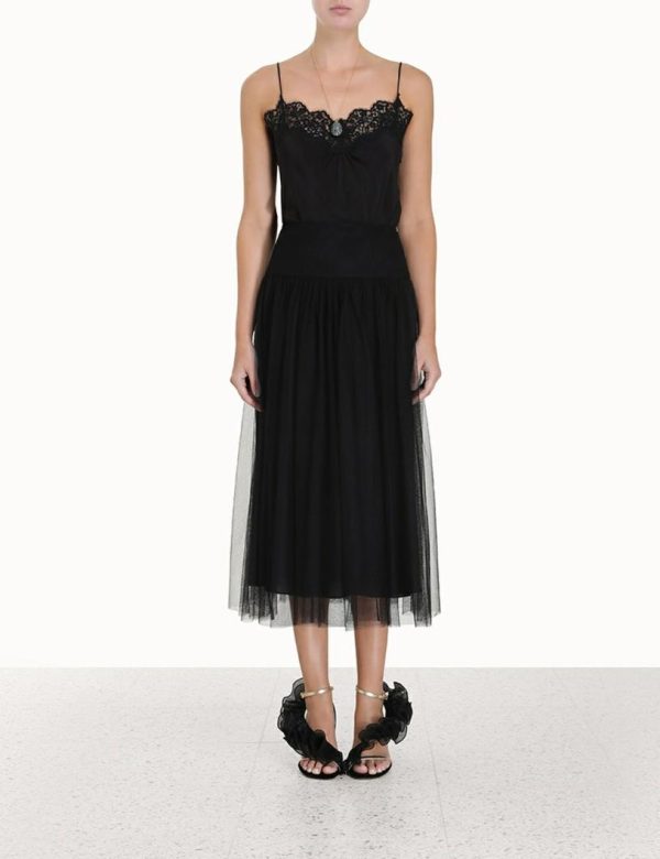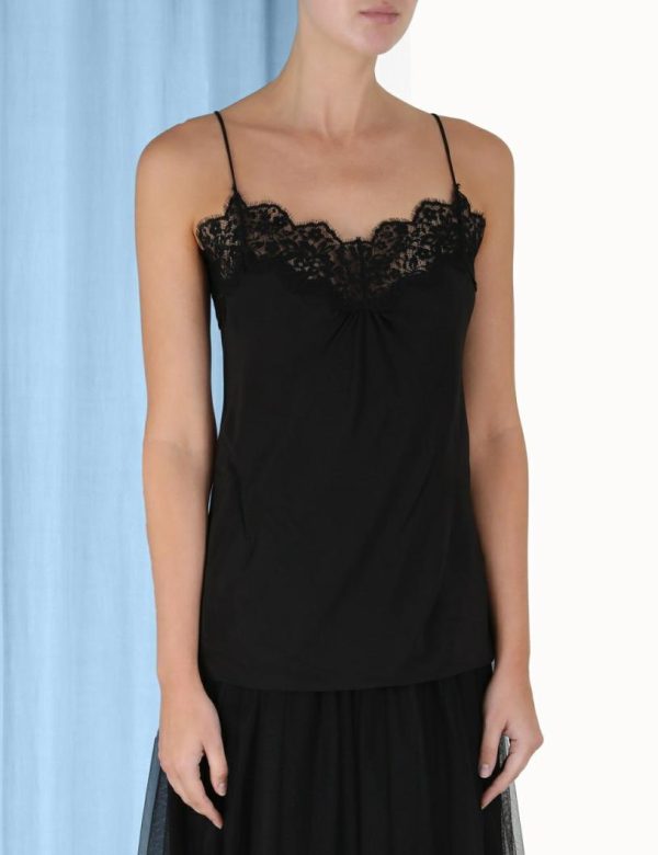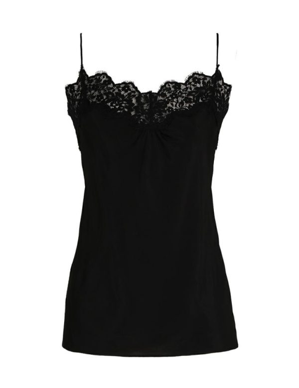 The Lace Cami in Black from our Fall 2023 Collection, Luminosity. A cami featuring a lace trim along the neckline.