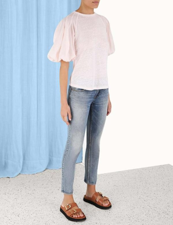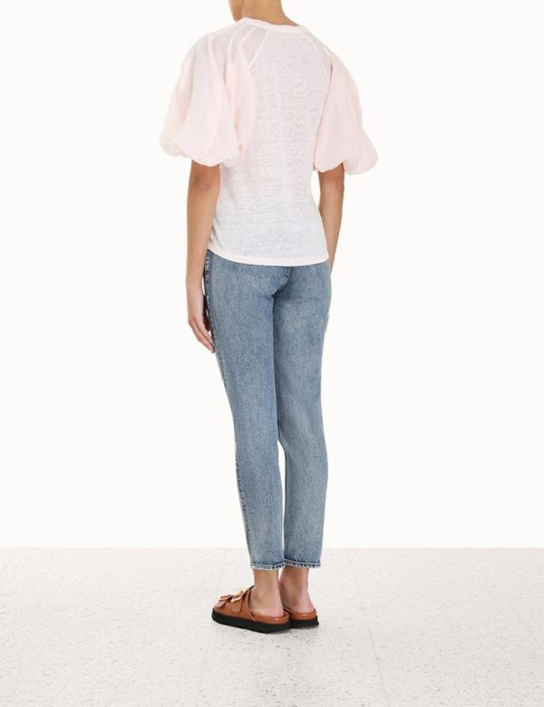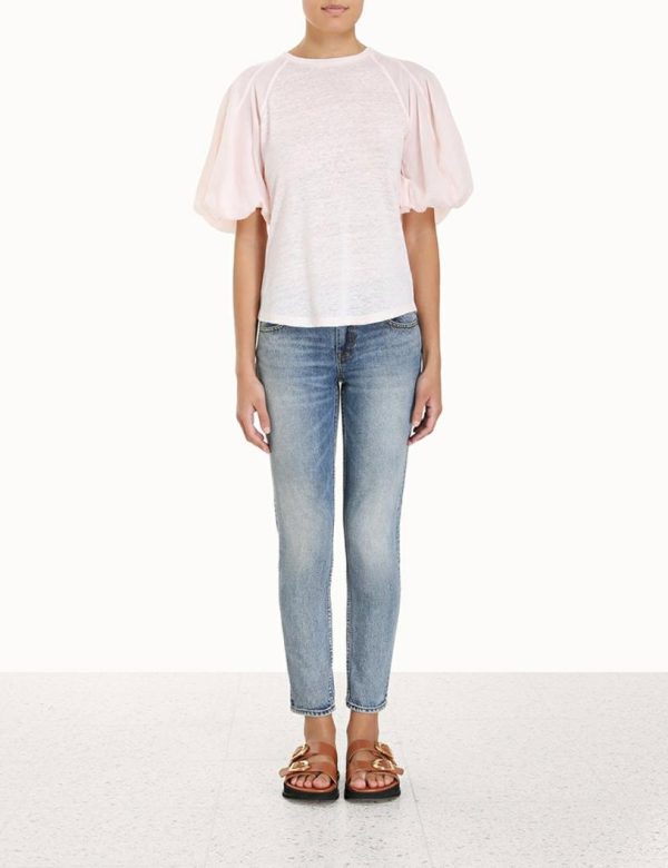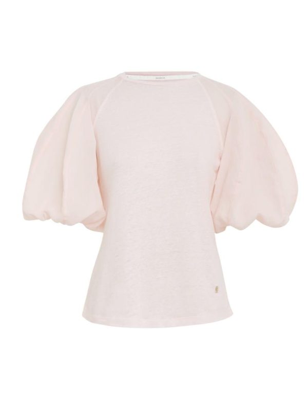 The Lantern Sleeve Tee in Blush from our Fall 2023 Collection, Luminosity. A linen tee featuring short blouson sleeves.
