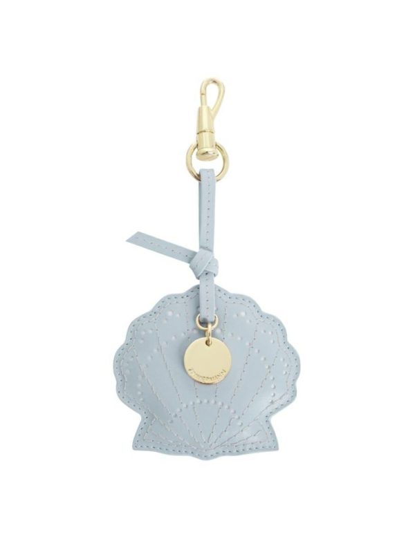 The Leather Shell Key Charm in Ash from our Summer Swim 2023 Collection. A keychain featuring a leather shell with gold plated hardware and perforations throughout.