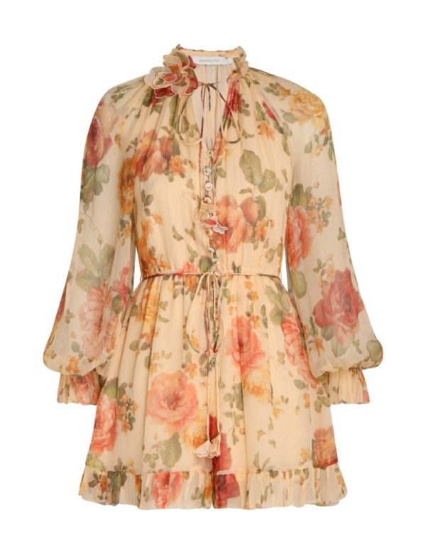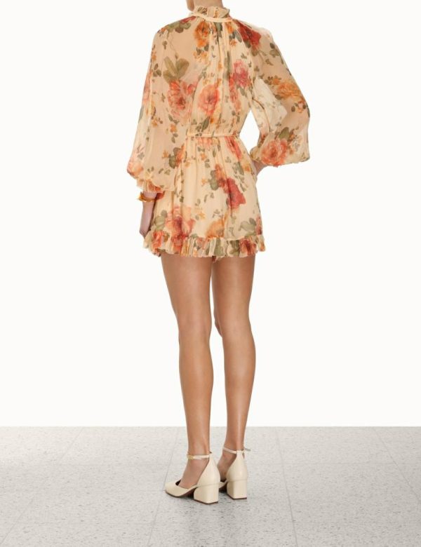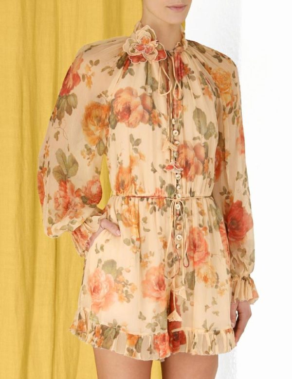 Zimmermann Luminosity Flutter Playsuit Latte Floral Print | Women Jumpsuits & Playsuits