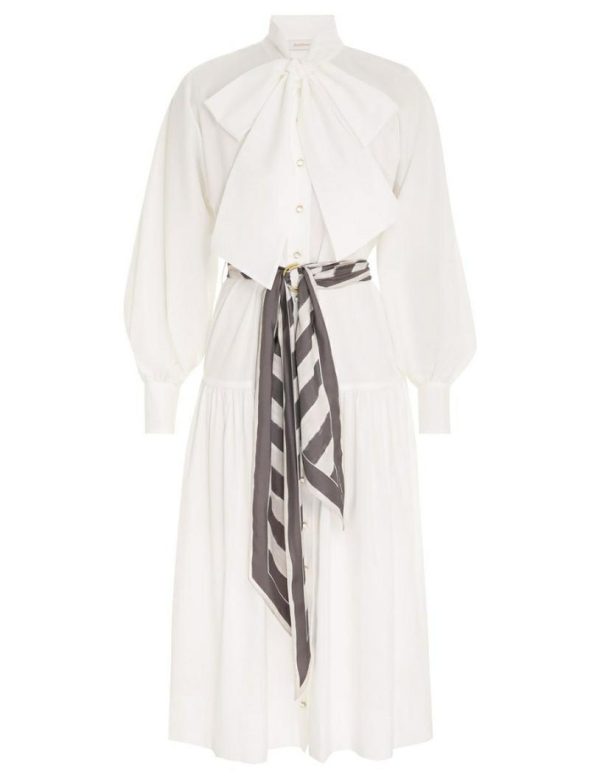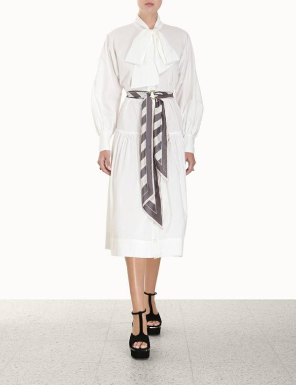 Zimmermann Lyrical Scarf Tie Shirt Dress Ivory | Women Clothing