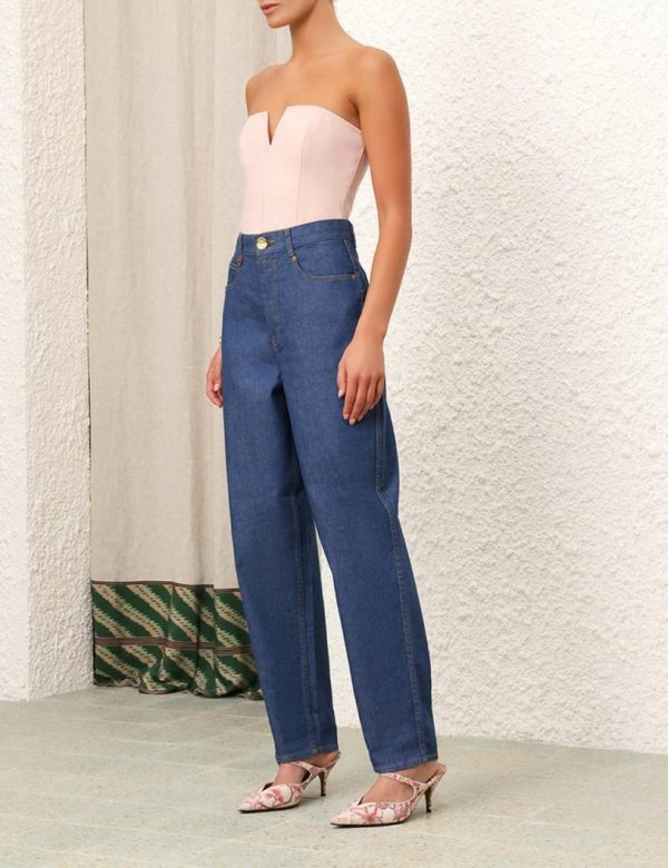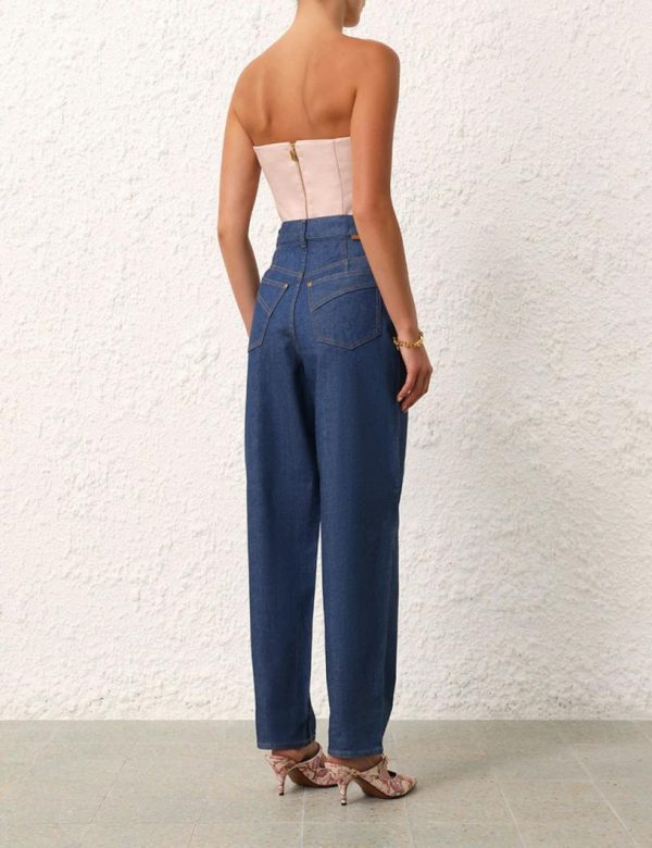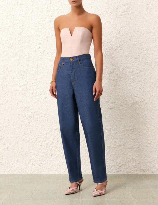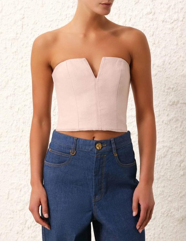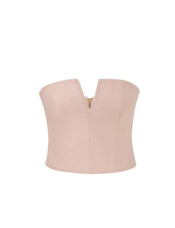 The Matchmaker Bustier in Blush from our Resort 2024 Collection, Matchmaker. A linen structured bustier featuring zig zag topstitching and boning throughout.