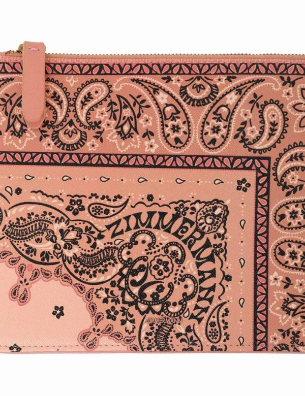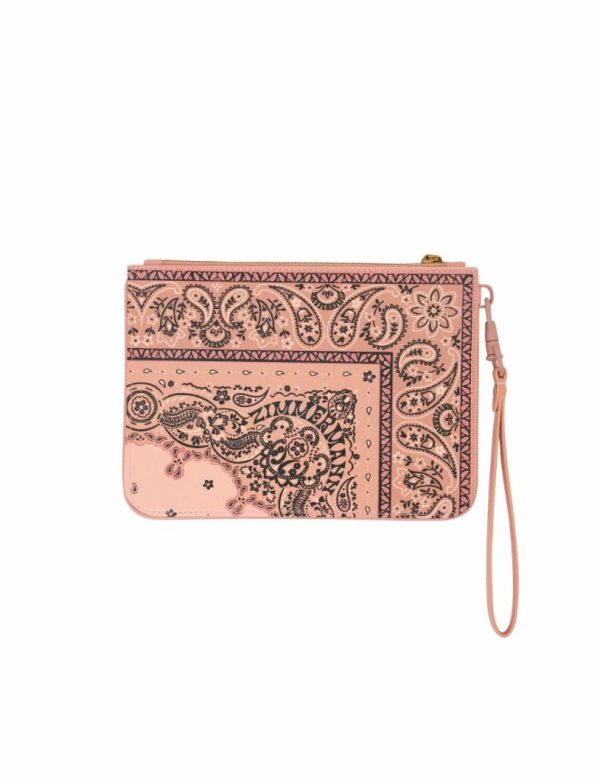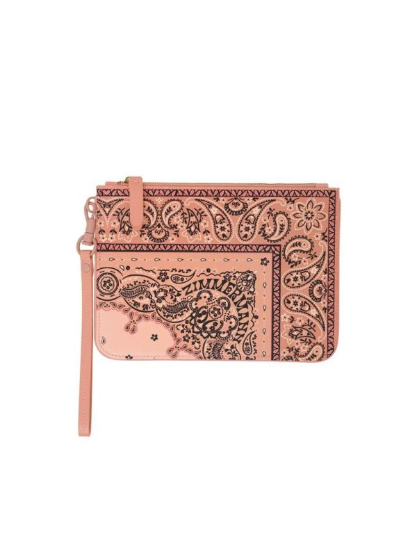 The Medium Printed Leather Pouch in Pink Bandana from our Resort 2024 Collection. A saffiano leather pouch with a wrist handle.
