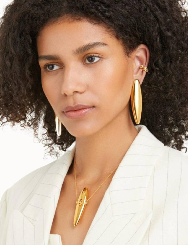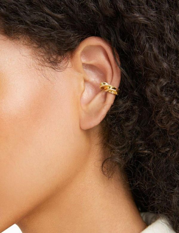 The Paint Stroke Ear Cuff in Gold from our Fall 2023 Collection, Luminosity. A gold plated ear cuff featuring a twist look detail and cubic zirconia stones throughout.