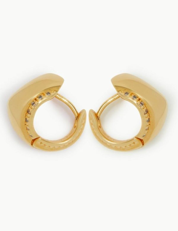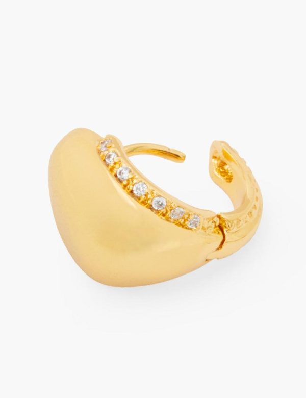 The Pebble Huggies in Gold from our Fall 2023 Collection, Luminosity. A gold plated earring featuring cubic zirconia stones throughout.