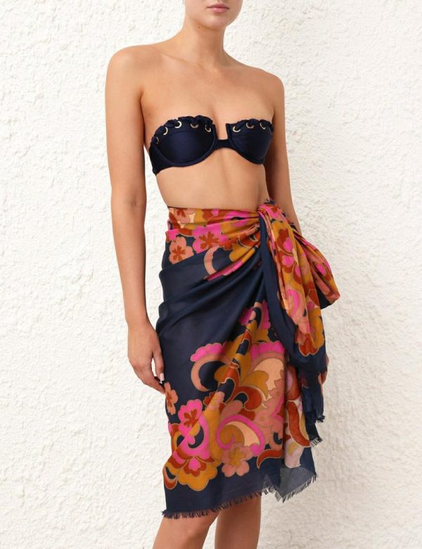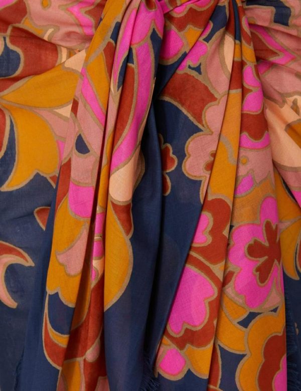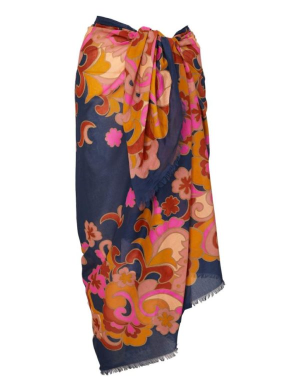 The Printed Cotton Pareo in Navy Paisley from our Resort 2024 Collection, Matchmaker. A large rectangle pareo featuring frayed edges and a placement print throughout.