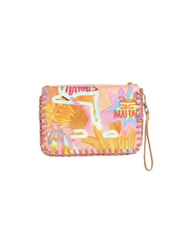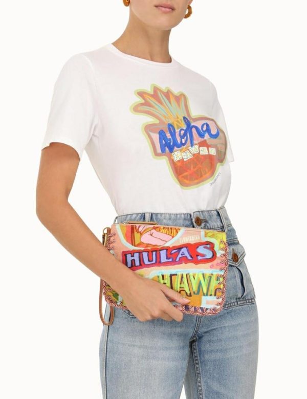The Printed Pouch in Hawaii from our Holiday 2023 Edit. A zip top pouch featuring a woven rope trim and a detachable handle.
