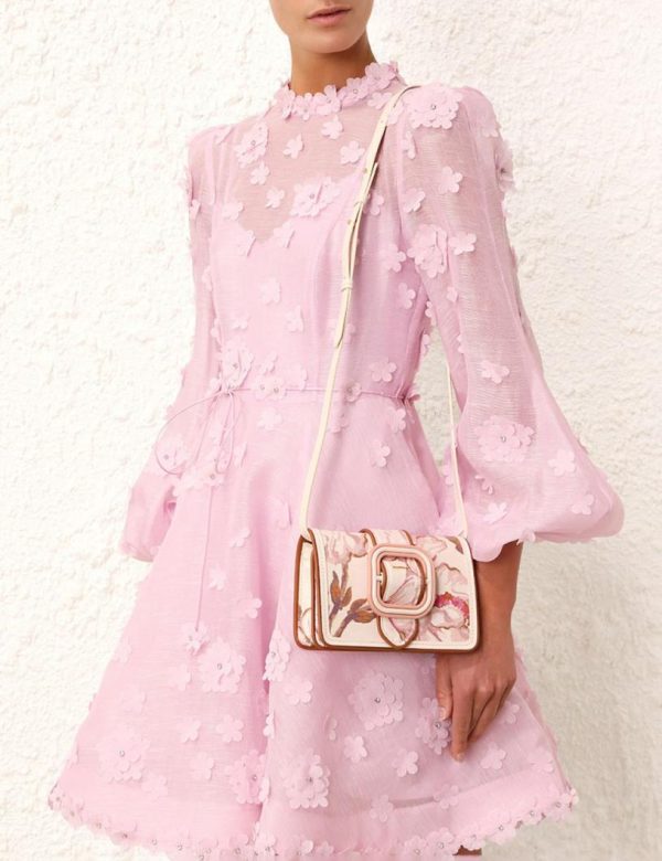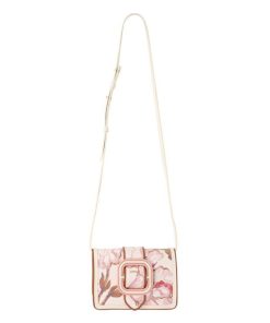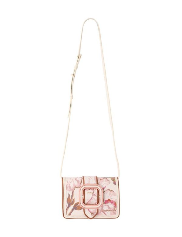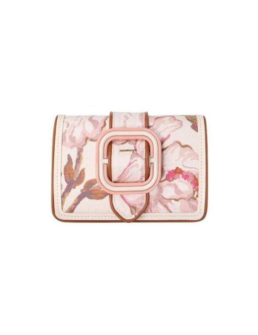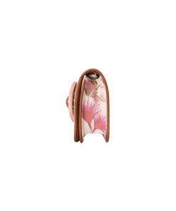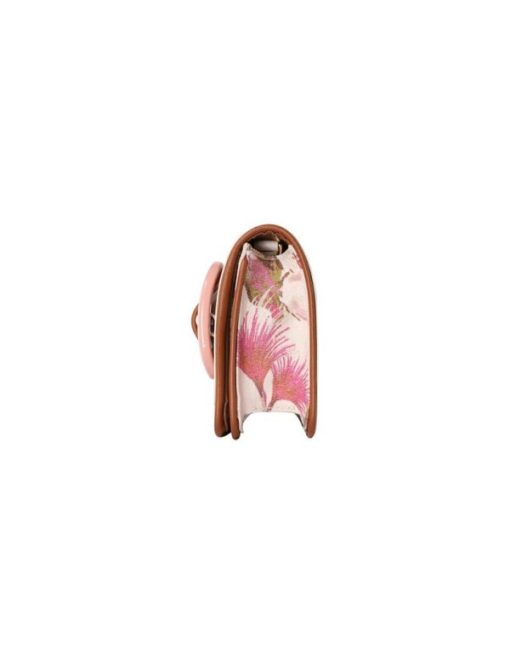 The Printed Small Cross Body Bag in Coral Hibiscus from our Resort 2024 Collection, Matchmaker. A small linen cross body bag featuring a buckle front design and an internal card pocket.