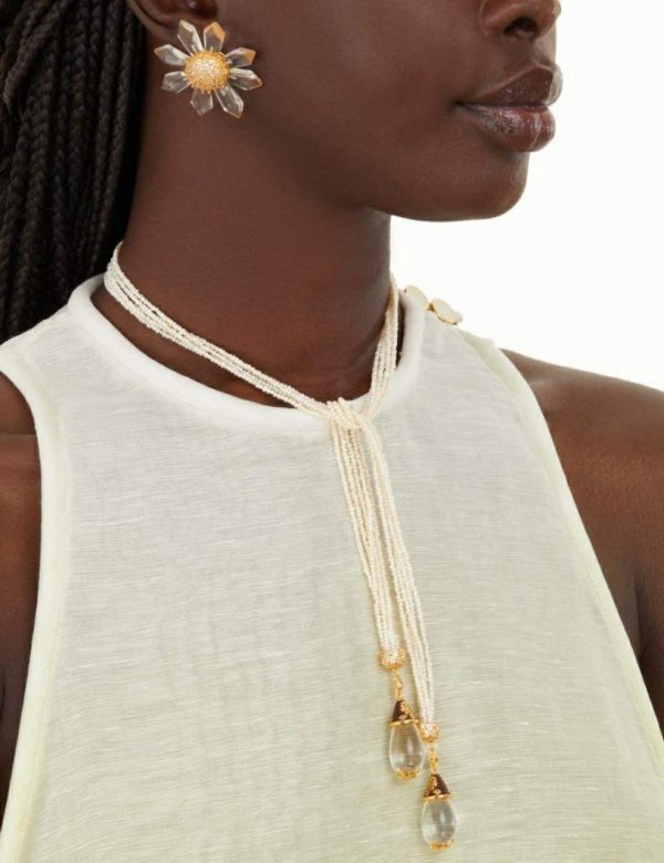 We have taken great care in sourcing this semi-precious stone for its natural beauty and create our own special shapes and hand cuts to make our jewellery unique. Any irregularity is inherent in its nature and should not be considered a flaw. There will be natural variance from piece to piece. Zimmermann jewellery is produced in 20k gold-plated brass. Please remove when exercising, showering or swimming. Avoid contact with perfumes, acetones, hand and body creams and water as they may cause damage or discolouring. Clean your jewellery carefully with a soft, non-abrasive, lint-free cloth to remove dirt and dust. Do not use cleaning products. Store in a cool, dry place to prevent damage. Keep away from direct sunlight and heat. Always check the care card for specific care instructions.
