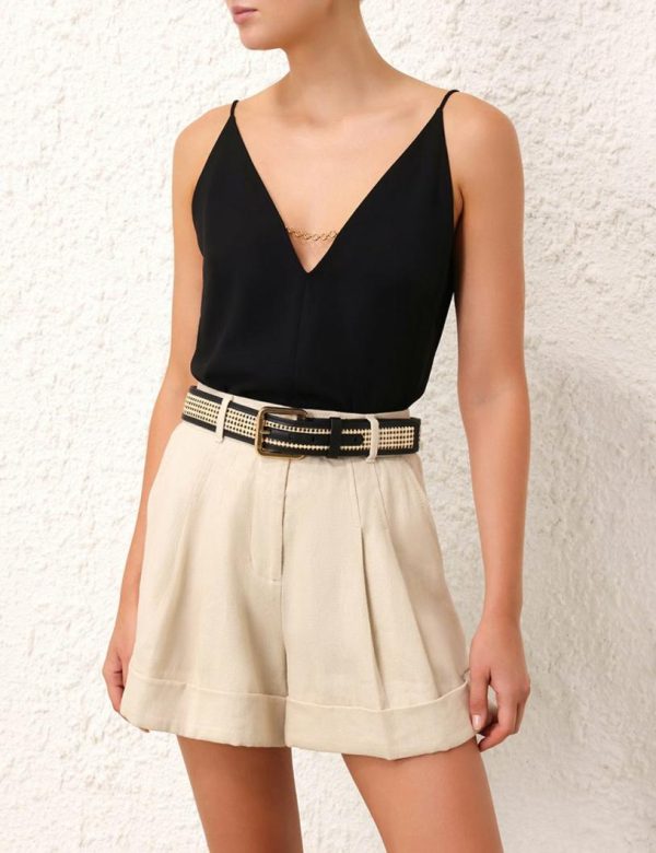The Raffia Belt 90 in Black from our Resort 2024 Collection, Matchmaker. A leather belt featuring contrast raffia throughout.